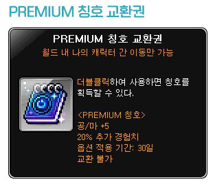 프리미엄 칭호 교환권/교환권을 사용한 칭호는 교환불가, 유효기간 30일