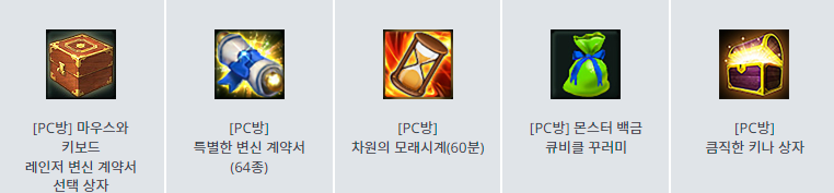 - 피시방 전용 인던에서 PC방 결정상자 획득가능